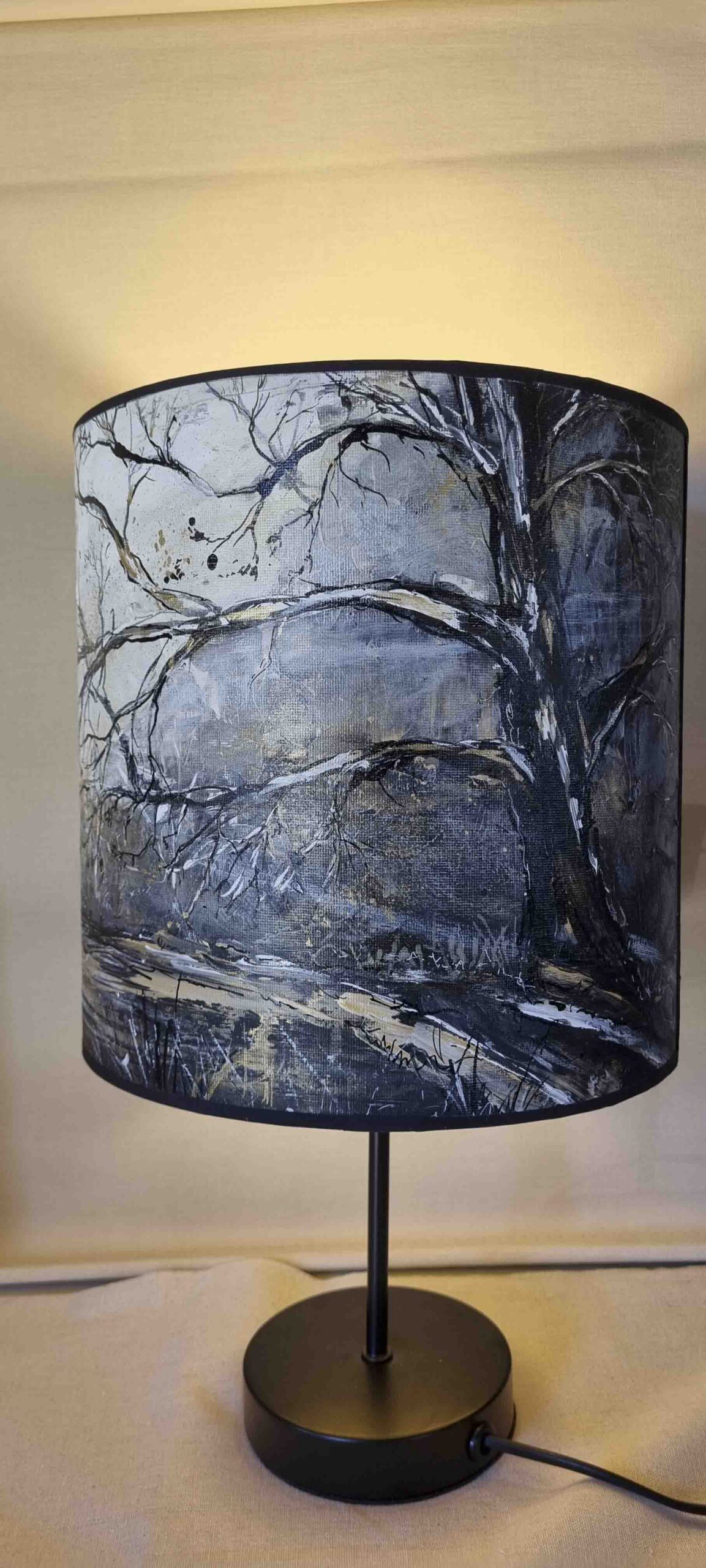 J’ai eu la chance de fréquenter le halage et d’errer, souvent, seule au monde, dans les cotonnades du matin. Cet abat-jour ? C’est tout mon amour pour cette belle région bretonne, avec ses mystères, ses arbres et ses (h)êtres, ses roches que fréquentent quelques fées (si, si).